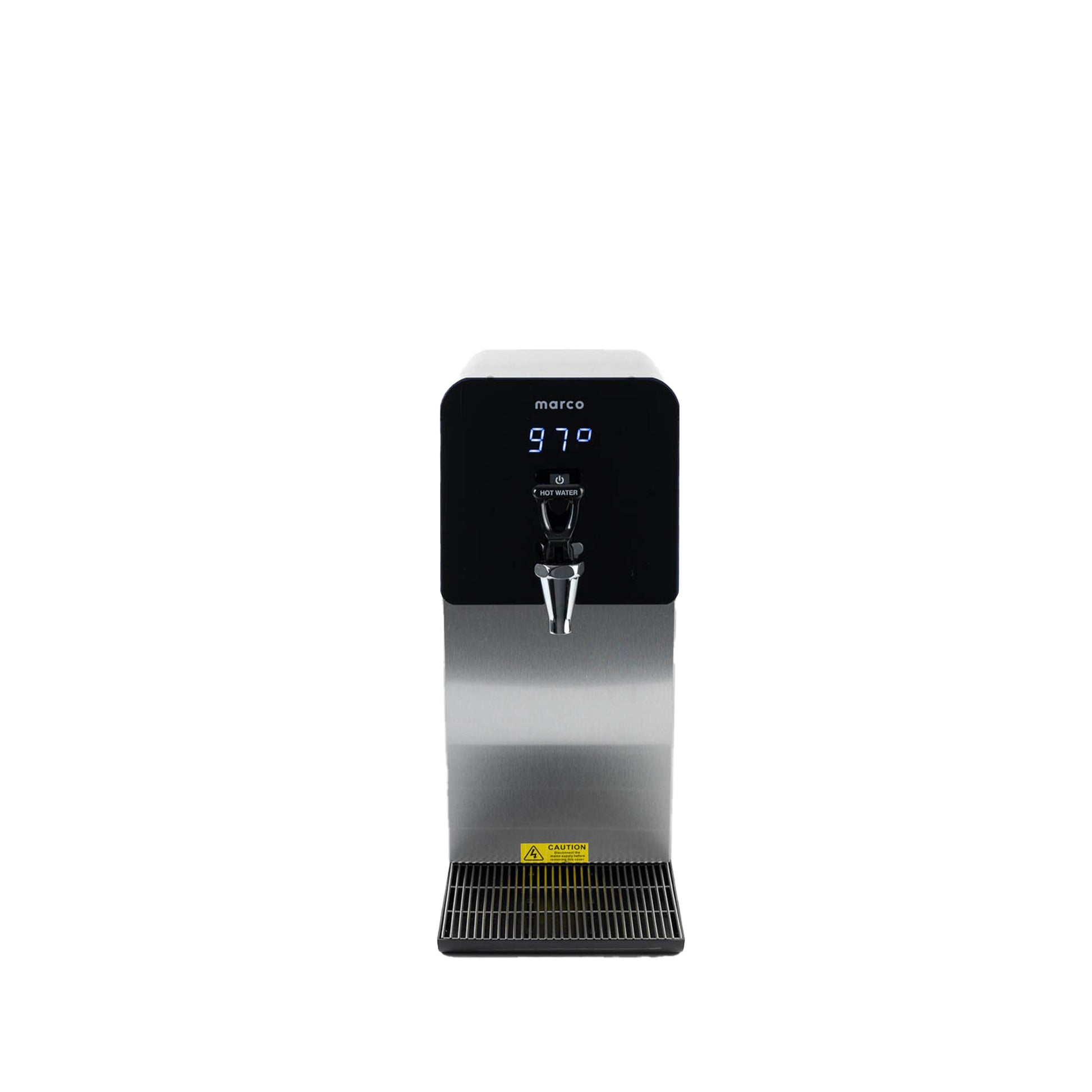 New from Marco. MT4 Commercial water boiler with tap. Stainless-steel casing with minimal countertop footprint. Insulated tank for energy-efficiency. Compatible with hands-free tap adapter.